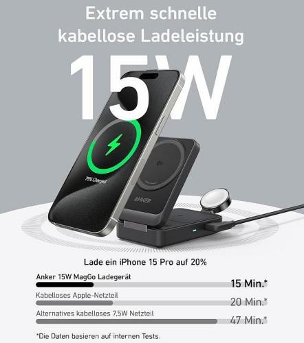 Produktinformationen "ANKER MagGo Wireless Charger, 15W, Foldable 3-in-1, black"