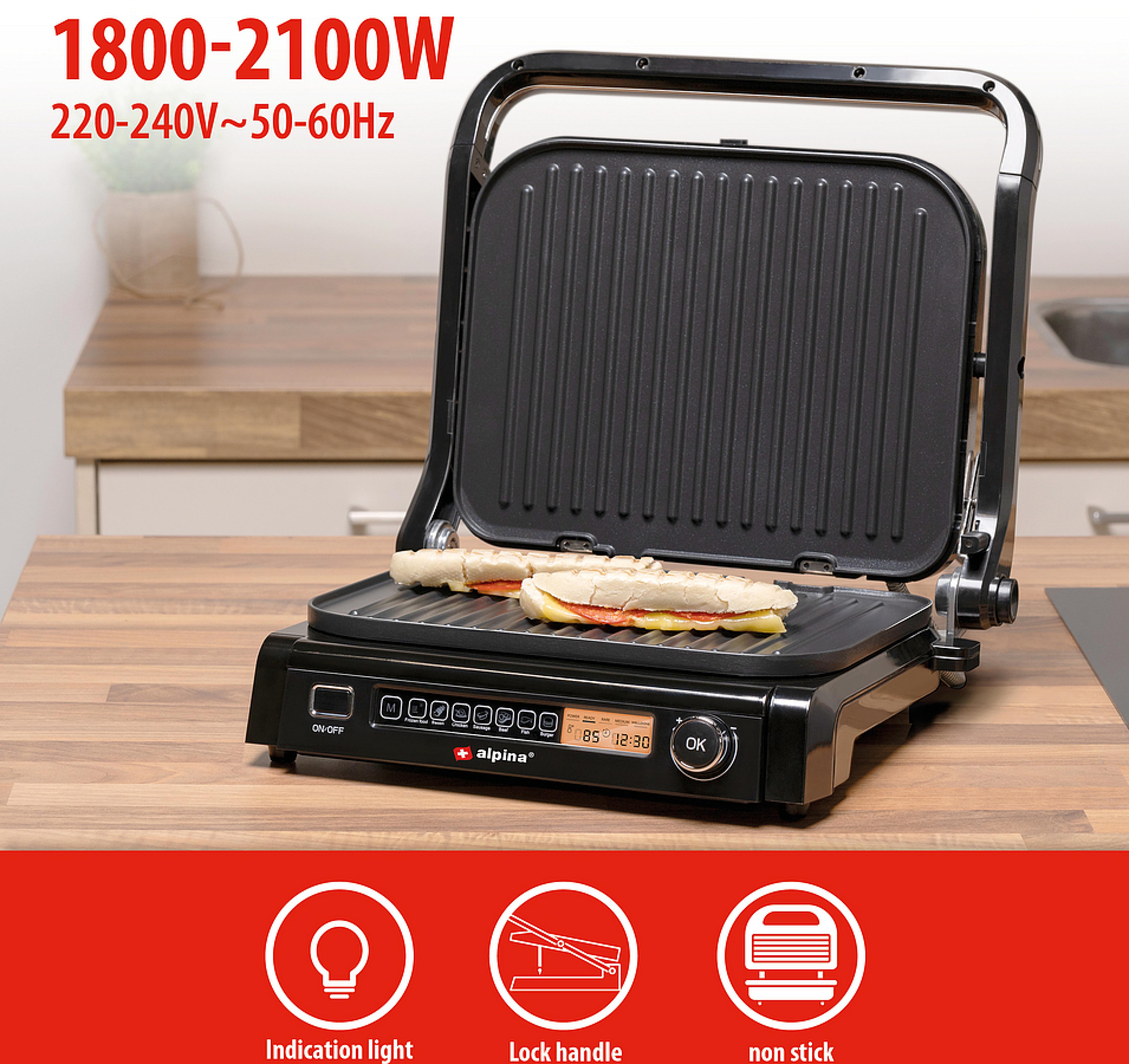 ALPINA Kontaktgrill, 230V, 2100W, Edelstahl
