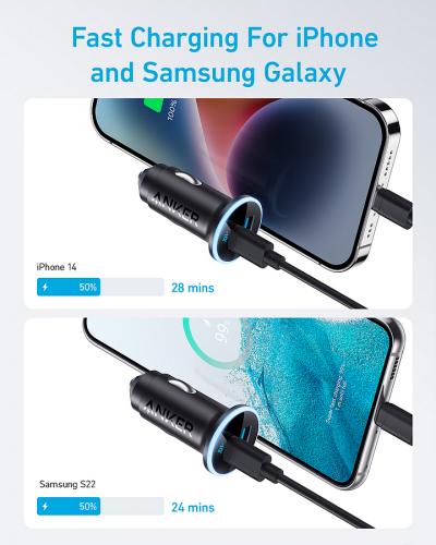 ANKER 323 Car Charger, 2 Ports, 52.5W, black