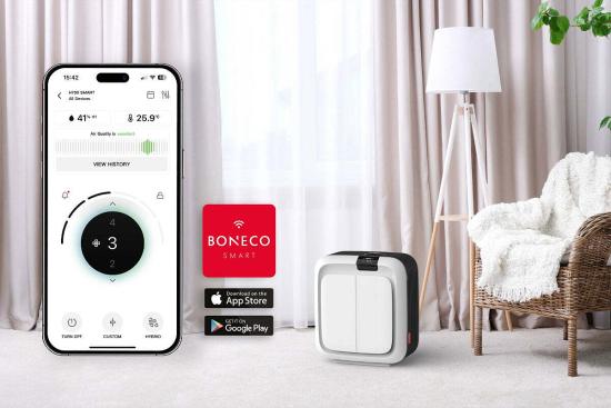Der leistungsstarke 3-in-1 Hybrid sorgt für optimale Luftqualität in großen Räumen befeuchtet, reinigt und verbindet sich intelligent mit der BONECO SMART APP. Die BONECO App bietet eine intuitive Benutzerführung und Navigation sowie einen innovativen Timer.