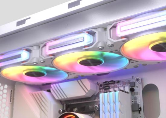 Ein vollständig umschlossener Lüfter maximiert die Oberfläche der Lüfterblätter und liefert maximale Leistung ohne Kompromisse beim Design. Der Apolar 120 ARGB-Lüfter verbessert Deinen PC durch effizientes Schnellverschluss-Daisy-Chaining, während das Q-Stop-Dämpfungssystem Quiet Stop Brummen und Geräusche eliminiert.