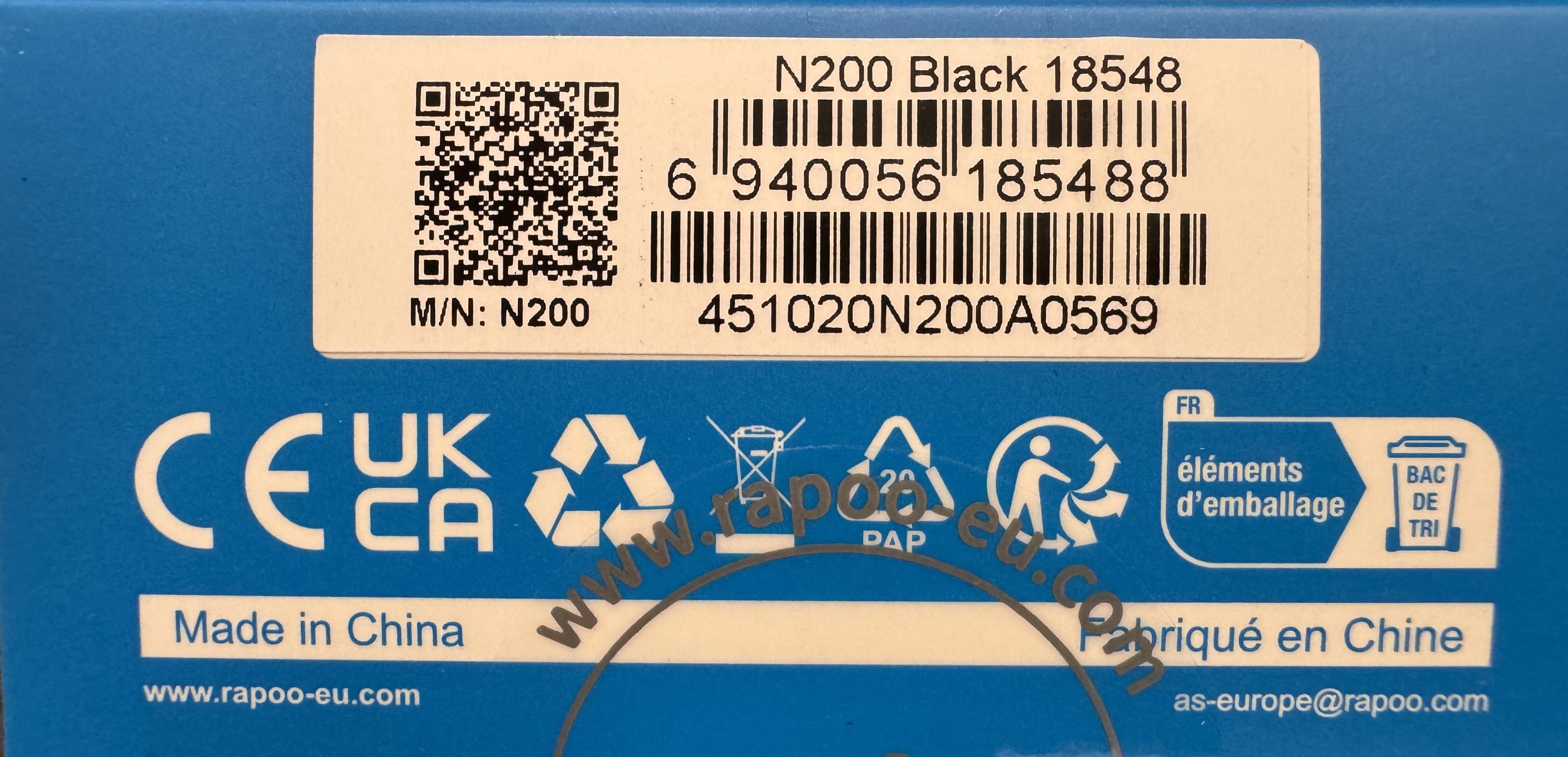 Produktinformationen "RAPOO N200.BLK Wired Mouse"