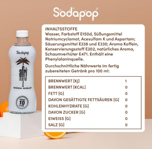 Produktinformationen "SODAPOP AFRI Cola Zero Zucker Sirup 500ml für 10 Liter"