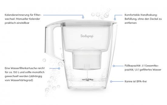 Produktinformationen "SODAPOP Wasserfilterkanne Selina, 1,5 Liter, weiß"
