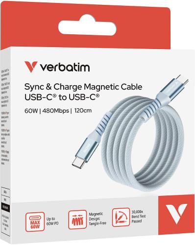 VERBATIM SYNC & Charger USB C to USB C 60W Magnetic 120 CM - Blue